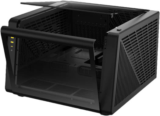NESO P1 B PRIME LIFESTYLE CASE – Trapezoid Shaped for Horizontal Desktop and Vertical Tower Setup – 8 Slot Horizontal and Vertical GPU Holder – Takes GPU Length up to 426mm – Supports Radiators up to 360mm, and 420mm Side – 70mm of Space for Thicker Top Radiator and Fans – 80mm of Space for Thicker Side Radiator and Fans – Front and Side Panoramic Tempered Glass Panels Swing Open – Dual-chamber Chassis – Room for PSU Length up to 180mm