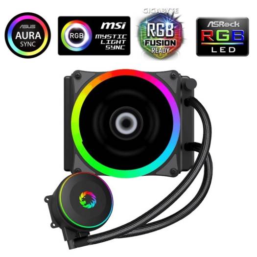 ICEBERG 120 is a high performance CPU liquid cooling system, qualified for Gaming PC case with 1 Rainbow Rgb 120 mm PWM fan. The fans are compatible with Aura Sync (Asus / Asrock), Mystic Light (MSI), RGB Fusion (Gigabyte). The 3Pin connector of the fan can be connected to the motherboard with the control interface (+ 5V 3pin header), so make sure the motherboard has the 3pin + 5V header. If the motherboard does not have a 3pin + 5V Header, you can buy the gamemax compatible hub controller for rainbow fans. MAIN FEATURES 120mm rgb rainbow addressable fans with PWM function. Compatible with Intel 1155/1150/1156/1151/1366/2011 sockets & AMD AM4 / AM2 / AM2 + / AM3 / AM3 + / FM1 / FM2 sockets. Compatible with Asus motherboards (Aura SYNC), Gigabyte (RGB Fusion), MSI (MYSTIC Light SYNC). Built-in water block LED indicator, the LED lights up when the cooling device is working properly. Copper has ex