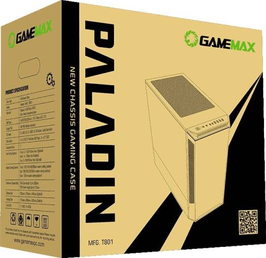 Paladin T801 BK It introduces an all new framework that further enhances clean interior and exterior design with intuitive and convenient installation. With the highest build quality in its class, featuring a full metal exterior and tempered glass side panel, the Paladin is everything you need to build your perfect system. The Paladin T801 compact mid-tower case features a unique one-pcs screw easy open glass side window, and along with top and bottom ARGB strips. You can effortlessly control ARGB lighting and fans via GameMax V2.0 PWM+Rainbow HUB controller pre-installed, while Adaptive Noise Reduction optimizes via PWM controls. Includes 2x ARGB LED strips and 1xPCS ARGB 12cm Rainbow fan pre-installed to enhance the aesthetics of your build as seen through the Paladin's stunning tempered glass panel. also Paladin model has optional vertical graphic card holder to provide flexiable installed position. Form Factor (Midi, Micro, Mini ITX, Full) Mid Tower Chassis SPCC 0.8mm rear and 0.6mm rest, Black painting interior</str
