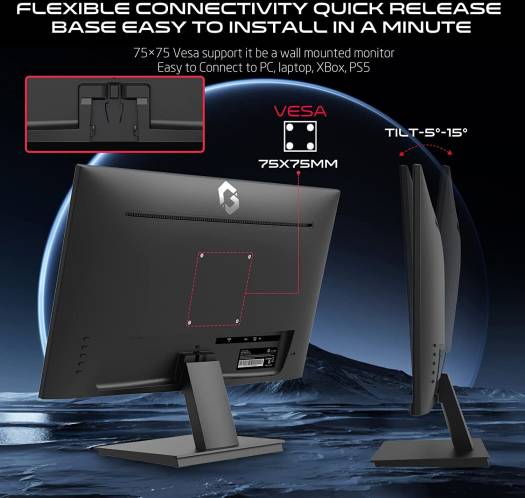 GAMEON 22″ FHD Flat Gaming VA Monitor, 75 Hz Refresh Rate, 2ms Response Time, Edge Lit LED, 16.7M Display Colors, 3000 1 Contrast Ratio, Fixed Stand, HDR, Low Blue Light, Black | GOB22FHD75VA