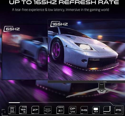 Extraordinary Gaming Marathon Experience: With a built-in speaker and headphone jack, you can enjoy the game at a premium sound quality. This FHD gaming monitor with an incredibly quick 1ms response time and a blistering 165Hz refresh rate to provide you incredibly smooth gameplay. It is designed for intensive, fast-paced games. Rich Image Quality like Real-Time Experience: These gaming monitors deliver stunning, rich, and vibrant images thanks to IPS technology. It uses Adaptive-Sync or Free-Sync technology to reduce choppy frame rates and screen tearing to provide you with seamless and smooth gameplay that gives you a real-time gaming experience. High-Definition Interface Options: There are several connectivity options available on the GAMEON FHD Gaming Monitor, including two HDMI 2.1 ports, one Display Port 1.2, and one Earphone jack interface. Flicker-Free Technology: With flicker-fr