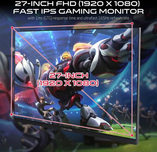 GAMEON 27″ FHD Flat Gaming IPS Monitor, 165 Hz Refresh Rate, 1ms Response Time, Edge Lit LED, 16.7M Display Colors, 1000 1 Contrast Ratio, HDR, HDMI 2.1 Console Compatible, Black | GOVE127FHD165