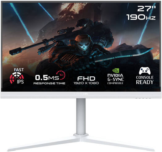 GAMEON Arctic Pro Gaming Monitor, 27″ Fast IPS Display, FHD Resolution, Up to 190Hz Refresh Rate, 0.5ms Response Time, NVIDIA G-Sync & AMD FreeSync Technology, White | GOA27FHD190IPS