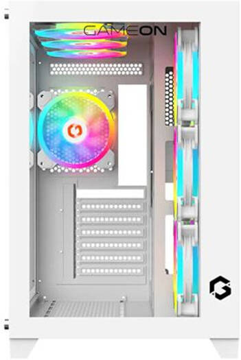 GAMEON Emperor Arctic Series Mid Tower ATX Gaming Case, Tempered Glass Side Panel, HDD*2 & SSD*1 Drive Bays, Support Up to 360mm Radiator, 7* Pre Installed 120MM ARGB+PWM Fans, White | GO-EMPEROR-A
