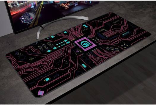 GamerTek Desk Mat, 80x30cm, Soft Micro-Weave Cloth Surface, Anti-Slip Rubber Base, Polyester Fabric, Circuit Hot Pink | 616985066292