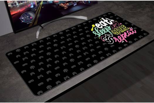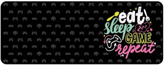 GamerTek Desk Mat, 80x30cm, Soft Micro-Weave Cloth Surface, Anti-Slip Rubber Base, Polyester Fabric, Eat Sleep Game | 616985066315