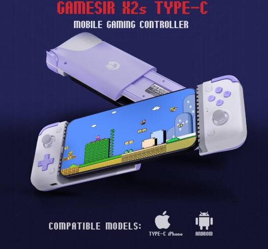 X2S Type-C The GameSir X2s Type-C Phone Controller is designed for Android and iPhone 15 Series devices with USB-C ports. This telescopic controller features Hall Effect sticks and Hall Analog Triggers, providing precise and responsive control for games like CODM, Zenless Zone Zero, Delta Emulator, and cloud gaming. Its ergonomic design ensures comfort during extended gaming sessions. Available in black, the GameSir X2s Type-C is a perfect accessory for mobile gamers seeking enhanced performance and seamless connectivity. Specifications