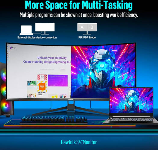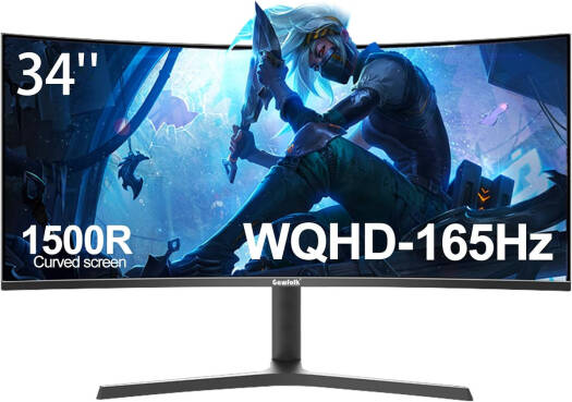 Gawfolk GF340C Ultrawide Curved Gaming Monitor, 34″ UWQHD VA Display, 165Hz Refresh Rate, 1ms Response Time, FreeSync & Eye Care Technology, 1500R Curvature, Black | GF340C