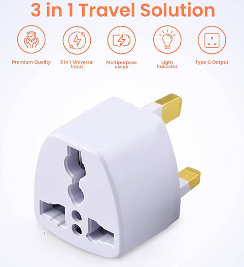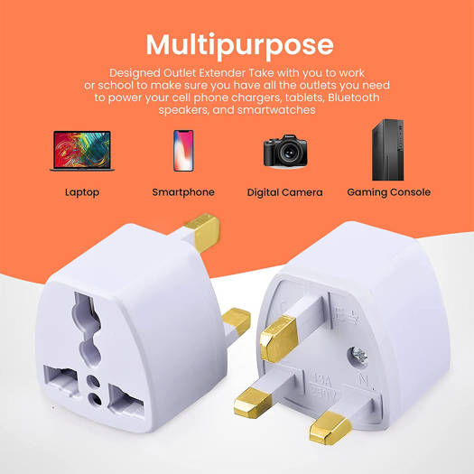 Generic 3 Pin Universal Adapter Plug, 13A Current, 250V Voltage, Compatible With Any Phone / Tablets / Laptop / Speaker, White / Gold |