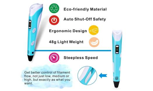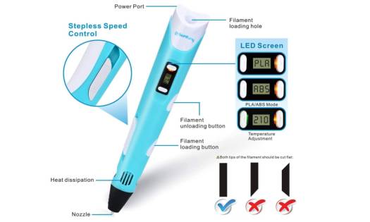 ABUNDANT 3D PEN SET – You get not only a 3D printer pen! The package comes with abundant 3D printing accessories: 1 color 1 feet PLA filament, carrying case, pen holder, power adapter, and a step-by-step manual. EASY, NO CLOGGING &amp; SAFE – The 3d drawing pen features an ergonomic handle, larger buttons, an LCD screen for a clear mode/temperature display, and indicator light. Beginners are friendly, quite easy to use. Ceramic nozzle and premium motor ensure safety and high performance without clogging. <span style="