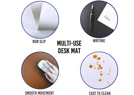 PROTECT YOUR DESK : Made of durable PU leather material, which protects your desk from scratches, stains, spills, heat and scuffs. It also gives your office a modern and professional atmosphere when you put it on your desktop. Its smooth surface will make you enjoy writing, typing and browsing. It is perfect for both office and home. MULTIFUNCTIONAL DESK PAD : 60x30cm Size is large enough to accommodate your laptop, mouse and keyboard. Its comfortable and smooth surface can be work as a mouse pad,desk mat,desk blotters and writing pad. SPECIAL NON-SLIP DESIGN : Special suede design for back side,increase friction resistance with the desktop,Non slip.The friction resistance is increased by 70% than that of double-sided leather. WATERPROOF AND EASY TO CLEAN : Made of water-resistant and durable PU leather, this desk pad protects your desktop from spilled water, drinks, ink and the other liquid. Easy to clean, just wipe with a wet cloth or paper.