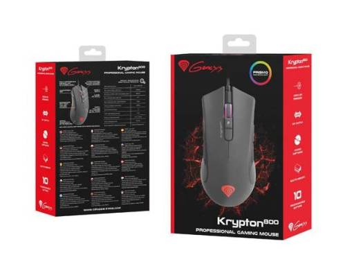 KRYPTON 800 GAMING MOUSE FOR THOSE WHO KNOW QUALITY The Krypton 800 is a high class gaming mouse, which will fulfill the needs even of the most demanding players. Its top of the class sensor, durable OMRON switches and RGB lighting with the PRISMO effect make this device the best selection for those gamers who like to play comfortably. ADVANCED SENSOR In order to guarantee the best gaming experiences, we’ve equipped the Krypton 800 with a top of the line PMW3330 optical sensor, which allows the user to e.g. set the maximum DPI to 10200! With such a range every player will be able to find the best option. If you need to change the DPI during gaming, you can select one of four predefined sensitivity levels quickly. STRENGTH IN NUMBERS The numbers don’t lie and in the case of the Krypton 800, they are remarkable: its maximum frame rate is 8000 FPS and maximum acceleration – 30 G. Add to it a maximum polling rate of 1000 Hz and a maximum tracking spee