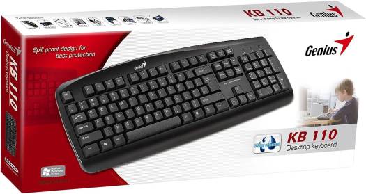 Standard desktop keyboard Standard keyboard with 104/105/106 keys Low profile key caps with low key noise Laser printing for key layout Spill resistant design Genius KB 110 is the latest desktop keyboard support Windows Vista. This comfort black keyboard with 104/105/106 compatible keys enhance windows layout. The low-profile keycap structure provides an excellent touch. Additional features include a water resistant function to prevent against accidental drink spillages. Contact your sales representative for more information. System Requirements: IBM PC Pentium compatible or higher Windows Vista/XP x64/XP/2000 Available USB port and PS2 depending on model.