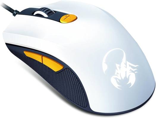 Genius M8-610 Scorpion Laser Wired Mouse, 6 Buttons, 800 – 8200 DPI Resolution, Optical Sensor Engine, 6500 fps Frame Rate, 30 Gs Acceleration, 130 IPS Velocity, White – Orange | 31040064103