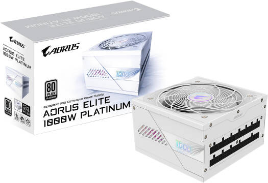 GIGABYTE AORUS ELITE P1000W 80+ Platinum Modular PCIe 5.0 Power Supply, 1000W Power, 80 PLUS Platinum Efficiency, 120mm Fluid Dynamic Bearing Fan, White | GP-AE1000PM-PG5-ICE