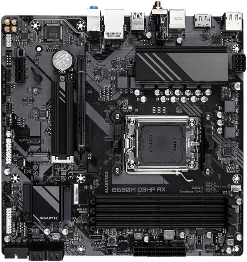 GIGABYTE B650M D3HP AX Micro ATX AM5 Motherboard, AMD B650 Chipset, 4x DDR5 DIMM Slots, Up to 256GB Max Memory, 1x PCIe 4.0 x16 Slot, 2x M.2 Slots | B650M-D3HP-AX