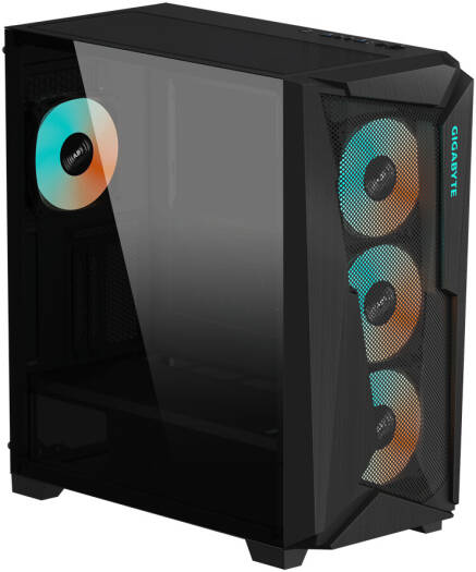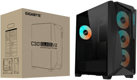 Gigabyte C301 Glass V2 Mid Tower Case, 4x Pre-Installed ARGB Fans, Up to 360mm Radiator Support, RGB Lighting, Dust Filter, Full-Size Tempered Glass Side Panel, Black | C301G-V2-ATX