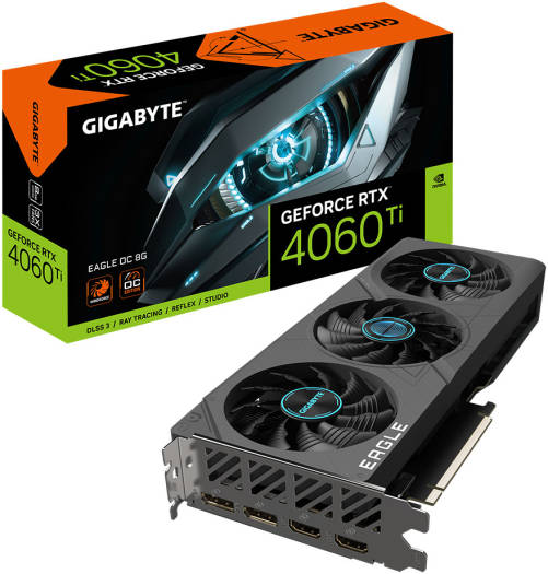 GIGABYTE GeForce RTX 4060 Ti EAGLE OC Graphics Card, 8GB GDDR6 128 bit Memory, 2550 MHz Core Clock, 4352 CUDA Cores, 18 Gbps Memory Clock, PCI-E 4.0, DisplayPort/ HDMI | GV-N406TEAGLE OC-8GD