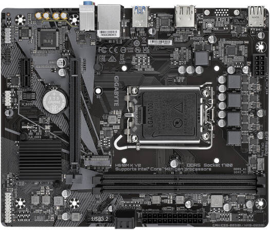 GIGABYTE H610M K V2 LGA1700 mATX Motherboard, Intel H610 Chipset, 2x DDR5 DIMM with 128GB Max, HiFi Audio, 1x PCI E x16, 1 x M.2, USB 3.2 Gen 1, HDMI & DisplayPort | H610M-K-V2
