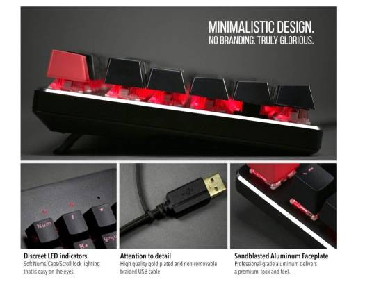 DESCRIPTION: Full modular, mechanical keys – Hot-swappable switches. Easily remove and install any MX-based switch without any soldering. Personalize to what works for you, and use any combinations of switches! LED Backlighting – RGB LED lights with 18 pre-installed effects and 1 slot for user-defined effect. Variable animation speeds and brightness settings. Easy Access Hot-Keys – Directly access shortcuts to productivity, internet and multimedia functions Sandblasted aluminum faceplate – Professional-grade aluminum delivers a premium look and feel Raised Keys, Minimalist design – No visible branding on keyboard to make your battlestation look clean as possible. Raised key design allows you to easily clean your keyboard. FULL SIZE PRE-BUILT WITH GATERON BROWN