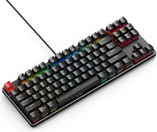 DESCRIPTION: Full modular, mechanical keys – Hot-swappable switches. Easily remove and install any MX-based switch without any soldering. Personalize to what works for you, and use any combinations of switches! LED Backlighting – RGB LED lights with 18 pre-installed effects and 1 slot for user-defined effect. Variable animation speeds and brightness settings. Easy Access Hot-Keys – Directly access shortcuts to productivity, internet and multimedia functions Sandblasted Aluminum Faceplate – Professional-grade aluminum delivers a premium look and feel Raised Keys, Minimalist design – No visible branding on keyboard to make your battlestation look clean as possible. Raised key design allows you to easily clean your keyboard. TKL PRE-BUILT WITH GATERON BROWN SWITCHES & BLACK KEYCAPS Trying out different switches, replacing old ones, and matching several types of mechanical keyboard switches used to be difficult and required advanced technical skill. The patent pending Glorious Modular Mechanical Keyboar