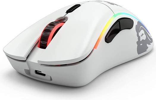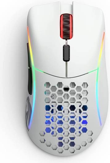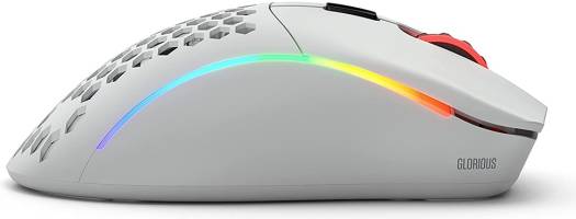 Model D Wireless Gaming-Mouse The Glorious PC Gaming Race Model D Wireless is a wireless gaming mouse with six programmable buttons . Thanks to its low weight , first-class sensor technology , and high-quality build , the mouse is suitable for demanding gamers with eSports ambitions. The stylish honeycomb design guarantees cool hands even on hot summer days and, with its integrated RGB lighting , becomes an absolute eye-catcher. The Features of the Glorious PC Gaming Race Model D Wireless Gaming Mouse at a Glance: Ergonomic, wireless tournament mouse with thumb buttons for right-handers Stylish honeycomb design in matte black with a weight of only 69 g Six programmable buttons for individual play styles Flexible, braided USB-C charging cable with a length of 2 m 1,000 hertz polling rate and mouse acceleration up to 50 G Very smooth G-Skates for minima