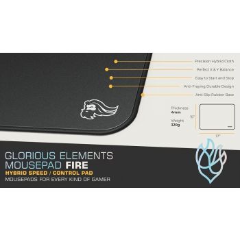 Glorious PC Gaming Race offers many great products for dedicated enthusiasts, from gaming mice to barebones keyboards and now a range of new mousepads. What differentiates these mousepads from the competition is that they have different surfaces to meet user preferences, based upon the classic themes of Fire, Ice and Water. The surface of the Fire mousepad is characterised by a mix of speed and control. It offers unparalleled precision thanks to a smooth hybrid cloth surface, meanwhile a rubber base ensures that this mousepad remains firmly in place. Of course such a premium material has the added advantage of being extremely durable. Materials :