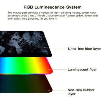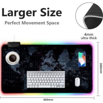 Glowing Cool RGB Map Large Mouse Pad, Gaming Mouse Pad Waterproof, Non-Slip, Easy to Clean 300 * 800 * 4mm |
