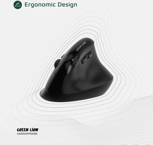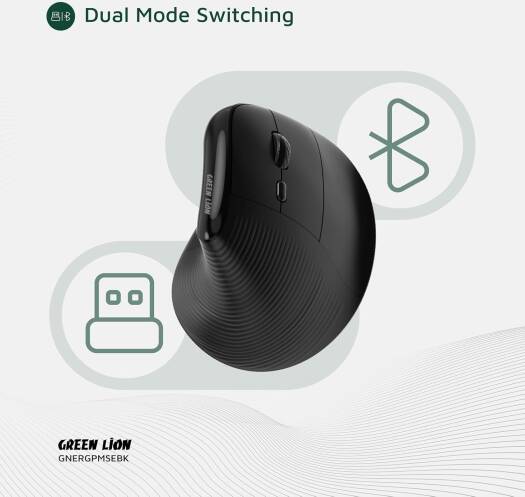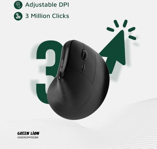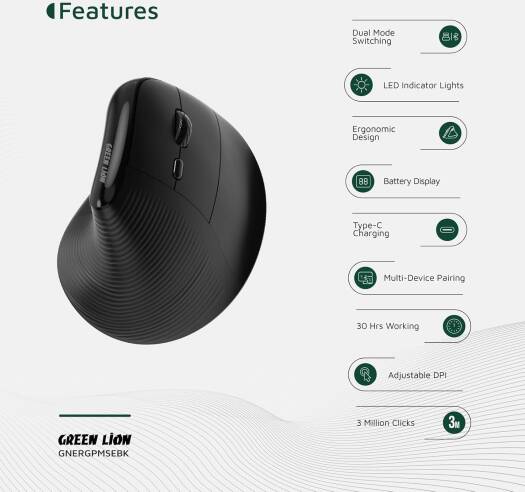 Green Lion Ergo Grip Vertical Mouse, BT & 2.4GHz Connectivity, 1200 to 4000 DPI, 500mAh Battery, 30H Working Time, 3 Million Clicks, LED Indicator Lights, Type-C Port, Multi-Device Pairing – Black