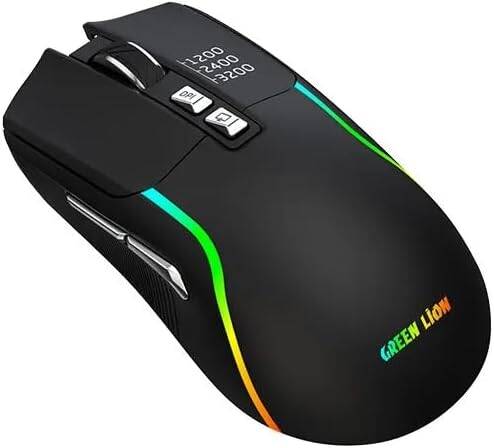 Green Lion Rechargeable Gaming Mouse, Adjustable DPI 1200-2400-3200, ABS Material, 10Meter Operating Range, 7 Control Buttons, Bluetooth Connection (B