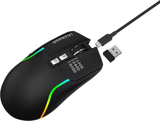 Green Lion Rechargeable Gaming Mouse, Adjustable DPI 1200-2400-3200, ABS Material, 10Meter Operating Range, 7 Control Buttons, Bluetooth Connection (Black)