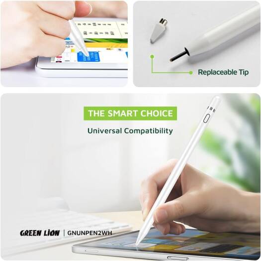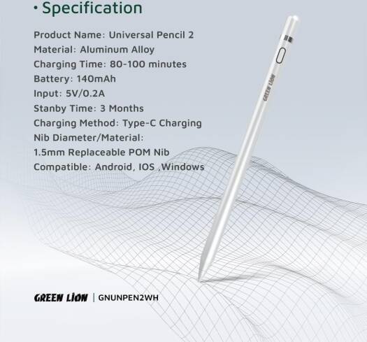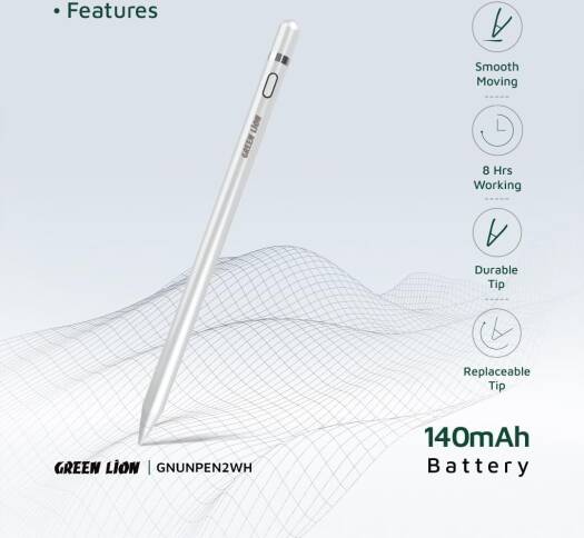 Green Lion Universal Pencil 2 Smooth Moving 8Hours Working Time Durable Tip Replaceable Tip Compatible With Android, Compatible With iOS Compatible Wi