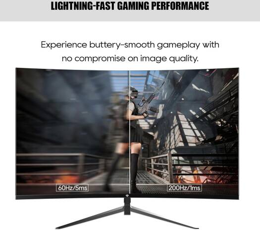 GXM GX24RFA Curved Gaming Monitor, 24″ VA Display, FHD Resolution, 200Hz Refresh Rate, 1ms (MPRT) Response Time, AMD FreeSync & G-Sync Compatible, 1650R Curvature, Black | GX24RFA