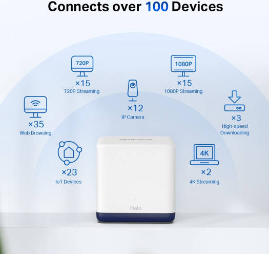| Interfaces | 3× Gigabit Ports per Halo Unit (WAN/LAN auto-sensing) |