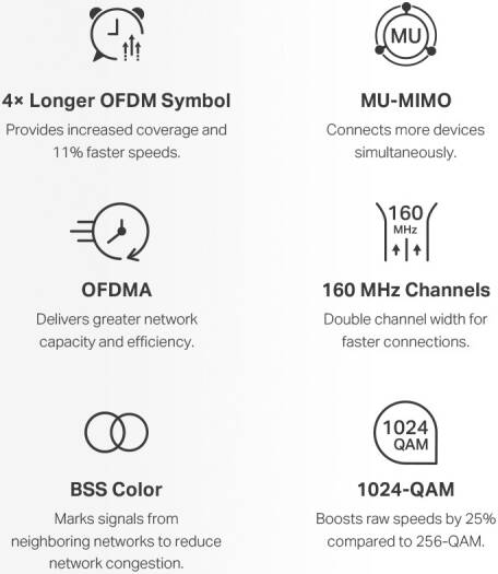 H80X V1 AX3000 Specifications Wireless Standards Wi-Fi 6 (IEEE 802.11ax/ac/n/a 5 GHz, IEEE 802.11ax/n/b/g 2.4 GHz) Wi-Fi Speeds 2402 Mbps (5 GHz), 574 Mbps (2.4 GHz) Reception Sensitivity 2.4 GHz: – 11g 6 Mbps: -96.5 dBm