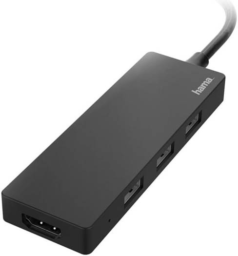 Hama USB-C Hub, Multiport, 4 Ports, 3 x USB-A, HDMI Now transfer your important data files with Hama USB-C Hub, Multiport with 4 Ports, 3 x USB-A, HDMI. Multiple device connectivity When slots on a PC, laptop, MacBook, or tablet are in low supply or need to be extended, or several devices need to be connected or unplugged centrally through a single plug, a USB-C hub with four connections is required. High-Speed Transfer You can transfer the data at a high-speed transfer of up to 480 Mbps. Easy to use There is no need to install any software or drivers manually; you can simply plug and play with Hema USB. High-speed data transfer of up to 480 Mbps For perfect, high-resolution ultra-HD cinema quality with 4096×2160 (4K) pixels USB-C hub with 4 connections when slots are in short supply (or are to be extended) on a PC, notebook, MacBook or tablet, or if multiple devices are to be connected / disconnected centrally via a single plug <b