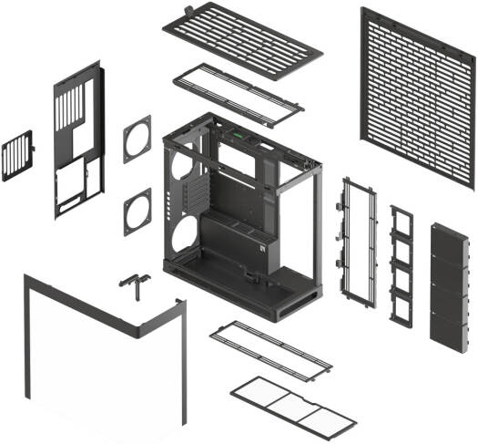 | Liquid Cooling Support | Top: 280 / 360 / 420 mm (Thickness: 65 mm, not overlapping with RAM) Right: 280 / 360 / 420 mm (Thickness: 60 mm w/ GPU >317mm, 80 mm w/ top AIO) Bottom: 280 / 360 / 420 mm (Thickness: 120 mm) |