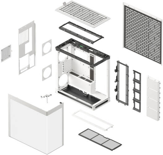 | Liquid Cooling Support | Top: 280 / 360 / 420 mm (Thickness: 65 mm, not overlapping with RAM) Right: 280 / 360 / 420 mm (Thickness: 60 mm w/ GPU >317mm, 80 mm w/ top AIO) Bottom: 280 / 360 / 420 mm (Thickness: 120 mm) |