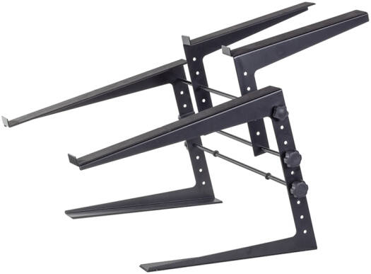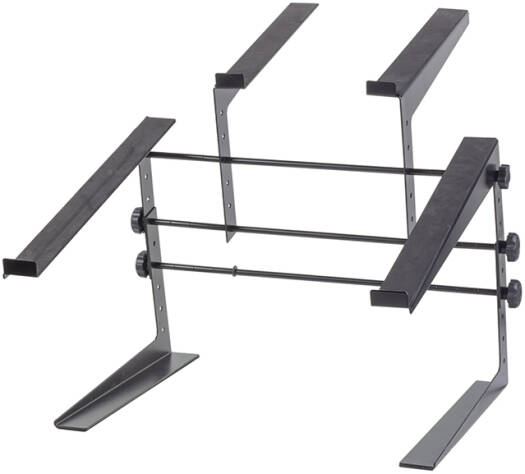 - Purpose: Stand for two devices (e.g., DJ controller, laptop, keyboard, pad controllers).