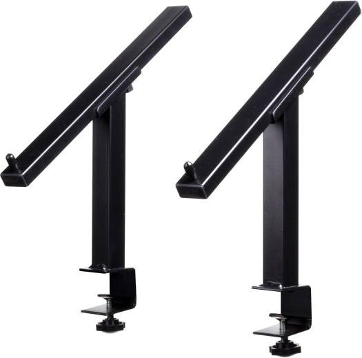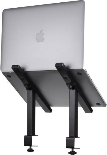The Headliner La Brea Laptop Brackets were designed to mount to a desktop or DJ façade, keeping your laptop elevated and your work surface clean and free of cords and other clutter. The mounting clamps fit on square tubes or tables from 0.5″ to 1″ thick. The bracket arms are 11″ deep and have four mounting holes for just the right distance and height positioning for your laptop. These durable brackets are made from powder-coated steel. Key Features Mounts to Table Tops or DJ Facades Fits All Laptop Sizes Great for Tablets & Lighting Controllers 0.5 to 1″ Mounting Depth 11.5″ Bracket Arm