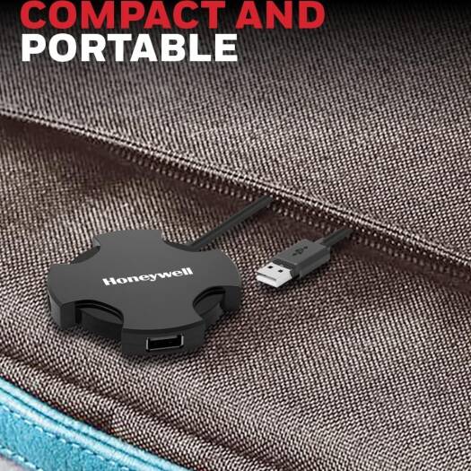 Honeywell 4-in-1 Ultra Slim USB Hub 2.0, 4ft (1.2 Mtr) Cable, 480MBPS, Universally Compatible with All USB PC Speaker Laptop Hard Drive Keyboard Print