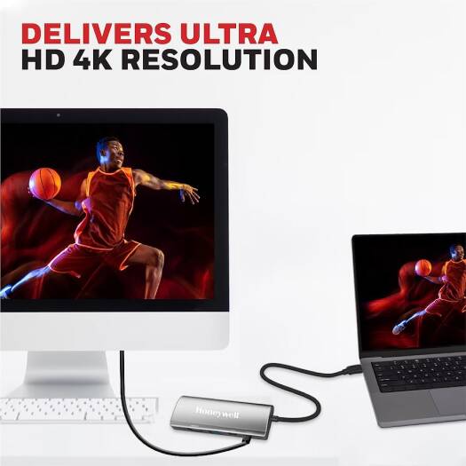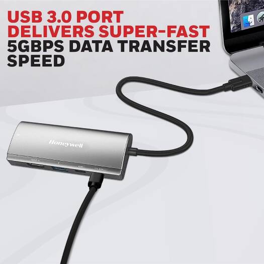 Honeywell 5-in-1 TypeC Mini Docking Station, 4K HDMI Port, 1GBPS, USB 3.0 Port & Dual Type C Ports PD85W & 5GBPS, Compatible with All Type C Devices-