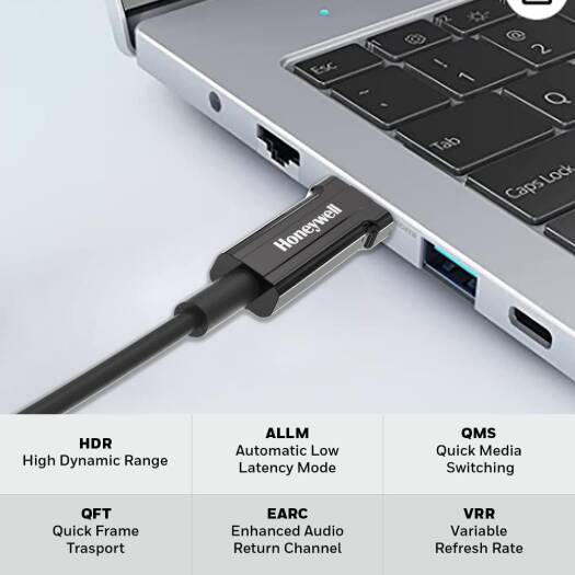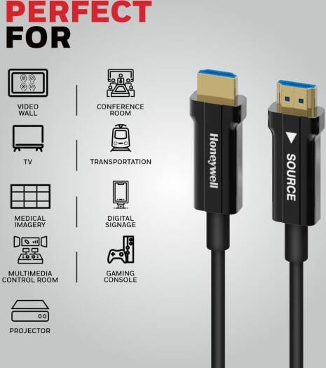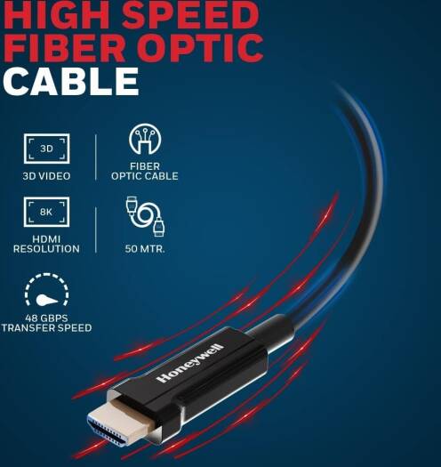 Honeywell HDMI AOC 2.1 Complaint 50M, 48GBPS, Supports UHD Resolution of 8K@60Hz, Male-to-Male, High-Speed Fiber Optics Cable, Compatible with TV, Gam