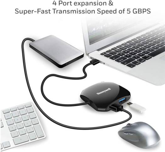 Honeywell Momentum Port 4-1 USB 3.0 Hub,Transmission Speed 5GBPS,Universally Compatible with All USB PC,Laptop, Speaker, Mobile, Pen Drive, Hard Drive