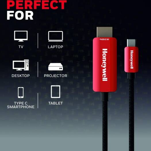 Honeywell Type C to 2.0 HDMI Cable, 4Kx2K@60Hz UHD Resolution, 2M, 18GBPS, High-Speed, Male to Male, Compatible with TV, Laptop, Type-C Smartphone, Pr