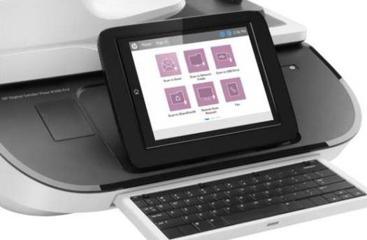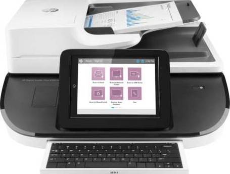 The fastest, most secure network scanner helps accelerate your business forward. Utilising high-performance features for a more productive office. 1,2 Features High-performance digital sending Easily and quickly transfer scans into editable text, encrypted PDF files, and more, using built-in OCR. Accomplish more. Faster than ever. Handle large volumes at blazing speeds – up to 100 ppm/200 ipm. Capture every page easily – even stacks of mixed media – with HP EveryPage and an ultrasonic sensor. Rely on this scanner time after time – recommended up to 10,000 pages per day. Manage jobs directly, using the 8-inch (20.3 cm) touch control panel with full pull-out keyboard. The world’s most secure scanning device HP FutureSmart firmware architecture can be scaled across devices and enhanced over time with new features. HP OXP offers out-of-the-box or custom-built solutions for processes, such as security, accounting and more. Centralise control of your scanning environment with HP Web Jetad