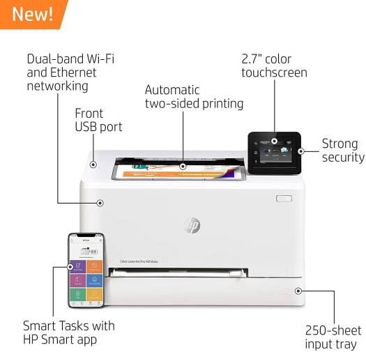 HP Color LaserJet Pro M255dw Wireless Laser Printer, Up to 22 ppm Print Speed, Remote Mobile Print, Duplex Printing, 250 Sheet Paper Tray, Up to 600×600 dpi, USB 2.0 / Wi-Fi / Ethernet, White | 7KW64A