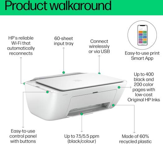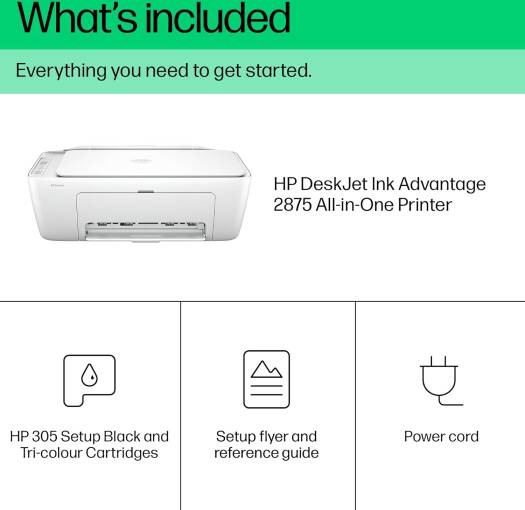 DeskJet Ink Advantage 2875 Get set up and started in a snap by following simple steps on the best and easiest-to-use print app Get started fast by following simple steps on the best and easiest-to-use print app. Be always ready to print with our most reliable Wi-Fi® that automatically reconnects if connection is lost Rely on high-quality, Original HP inks with high yield for frequent printing at low cost Even if you print a lot, you’ll save a lot with the optional low-cost, high-yield Original HP inks.