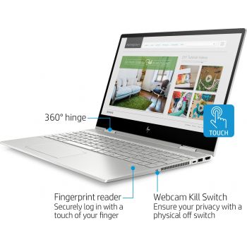 HP Envy 15-DR1070WM Laptop, Intel Core i5-10210U, 8GB RAM, 256GB SSD, No Optical Drive,15.6 FHD IPS, X360 Multi Touch Screen, Finger Print Reder, English Keyboard – Natural Silver | 1A1K6UA#ABA