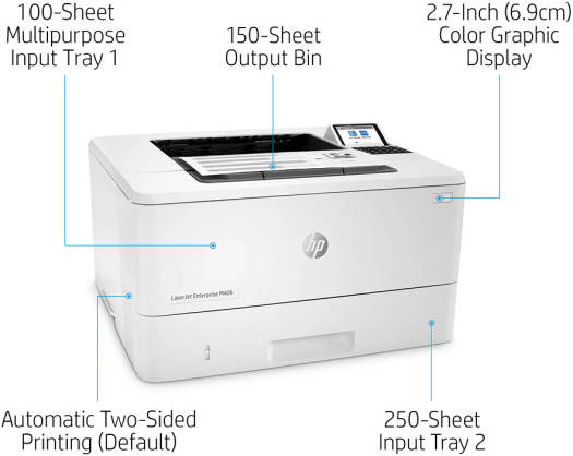 Overview Print only Print speed letter: Up to 42 ppm (HP high speed mode) black Auto duplex printing; 2 paper trays (standard); 2.7 inch color graphics display The world’s most secure printing